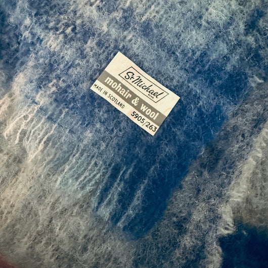 Vintage mohair and wool scarf with fringed ends by St Michael, in tonal blue and white stripes. Shorter length.